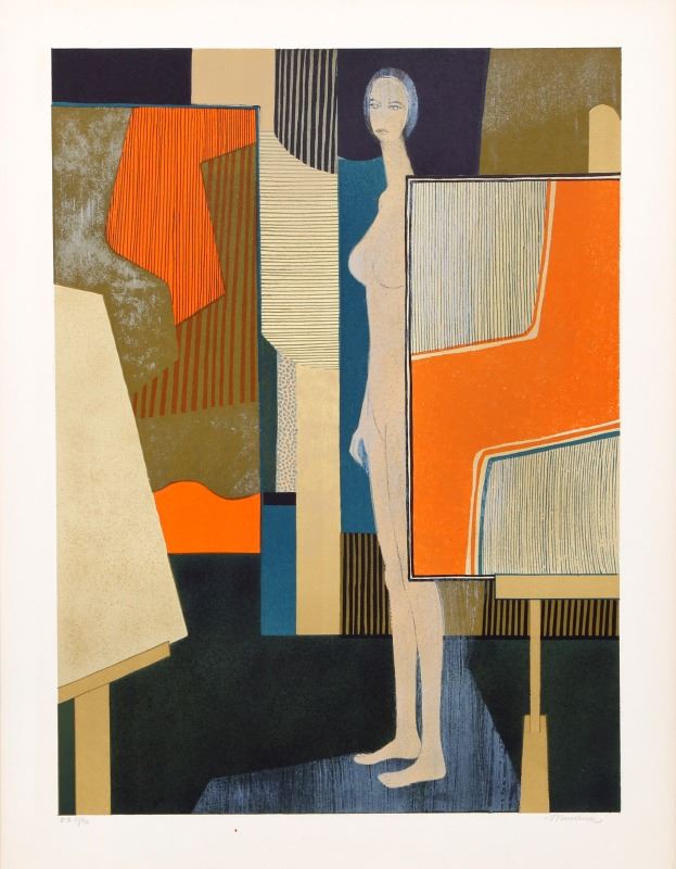 Andre Minaux, Nude in Artist's Studio, Lithograph