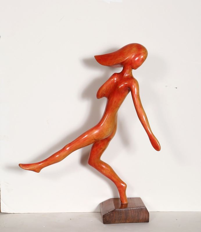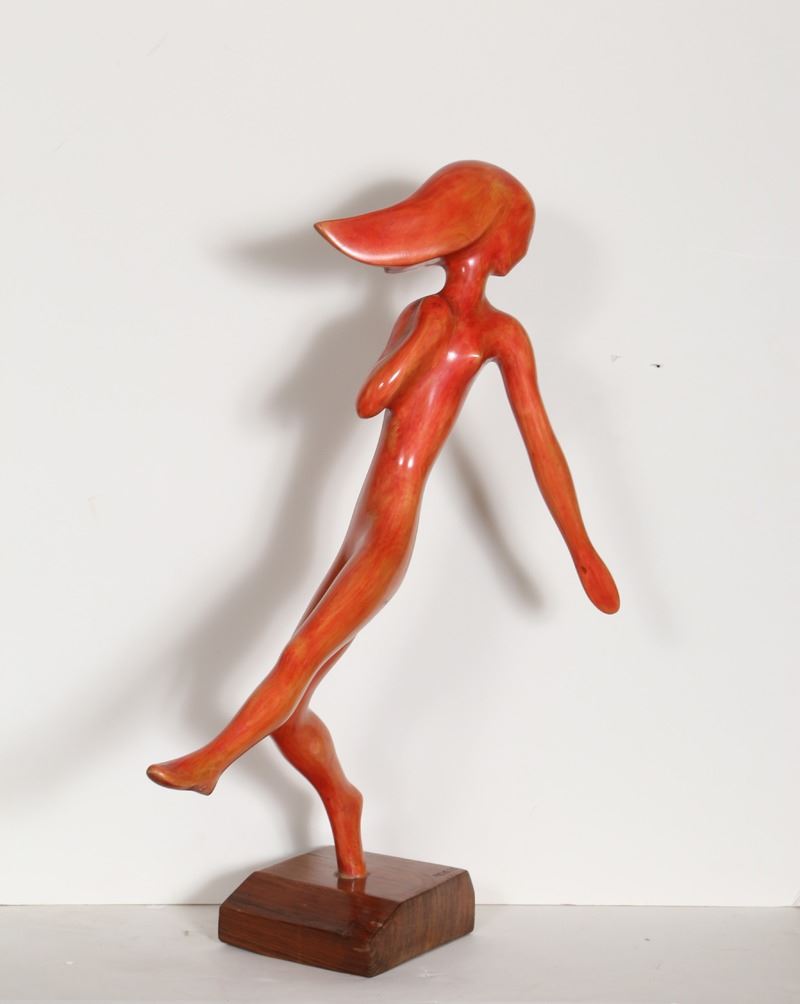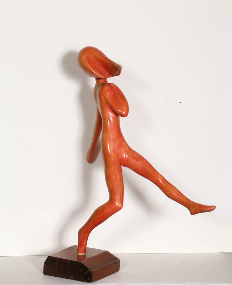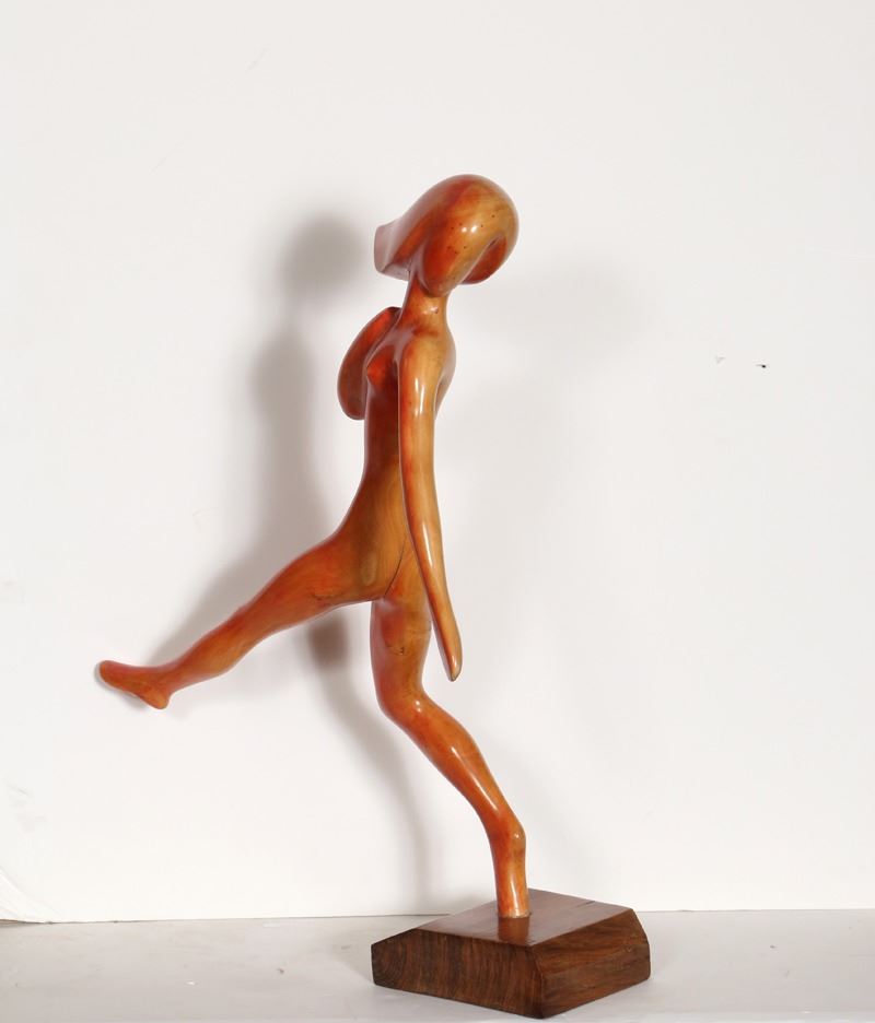 Andre Revesz, Striding Woman, Carved Wood Sculpture