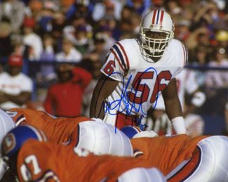 Andre Tippett was drafted by the New England Patriots in the 2nd round of the 1982 NFL Draft. Tippett is a member of the NFL’s 1980s all-decade team and was selected to five Pro Bowls in his career, earning the nod in five straight seasons from 1984–88. From 1984–85, Tippett recorded the highest two-season sack total by a linebacker in NFL history, totaling 35.0 sacks during the two seasons. His 18.5 sacks in 1984 are the third most by any linebacker in a single season, while his 16.5 sacks in 1985 are tied for the sixth most by any linebacker in NFL history. He was selected to the Pro Football Hall of Fame for the class of 2008. Andre Tippett has hand signed this New England Patriots 16x20 Photo with HOF 08 inscription. MAB Hologram and Certificate of Authenticity from Athlon Sports.