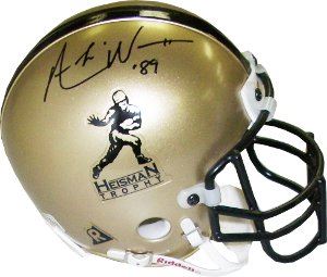 Andre Ware played at the University of Houston, where he was the first black quarterback to win the Heisman Trophy in 1989, along with the Davey O'Brien Award, the latter award given to the most outstanding college quarterback of the year. That year, his junior year, he threw for 4,699 yards, 44 touchdowns, and set 26 NCAA records. The Cougars ended the season ranked the #6 team in the nation by the Associated Press. Andre Ware has hand autographed this Heisman Authentic Riddell mini helmet. Certificate of Authenticity from Athlon Sports.
