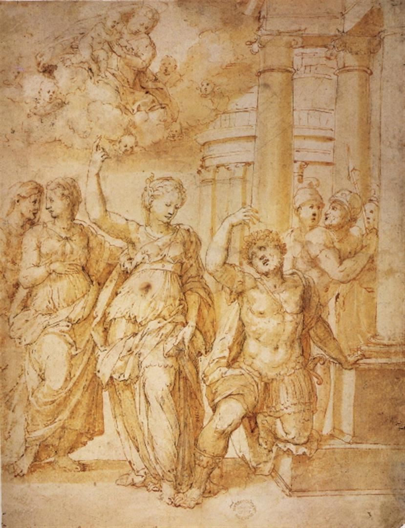 Artist: Andrea Riccio - Title: Sibylle Announcing the Birth of Christ to Emperor Augustus - Medium: Fine Art Giclee on Canvas - Image Size: Approximately 20 inches x 15.5 inches - Unframed on Unstretched Canvas - Biography: Andrea Riccio (c. 1470 - 1532) was an Italian sculptor and occasional architect, whose real name was Andrea Briosco, but is usually known by his sobriquet meaning "curly"; he is also known as Il Riccio and Andrea Crispus ("curly" in Latin). He is mainly known for small bronzes, often practical objects such as inkwells, door knockers or fire-dogs, exquisitely sculpted and decorated in a classicising Renaissance style.