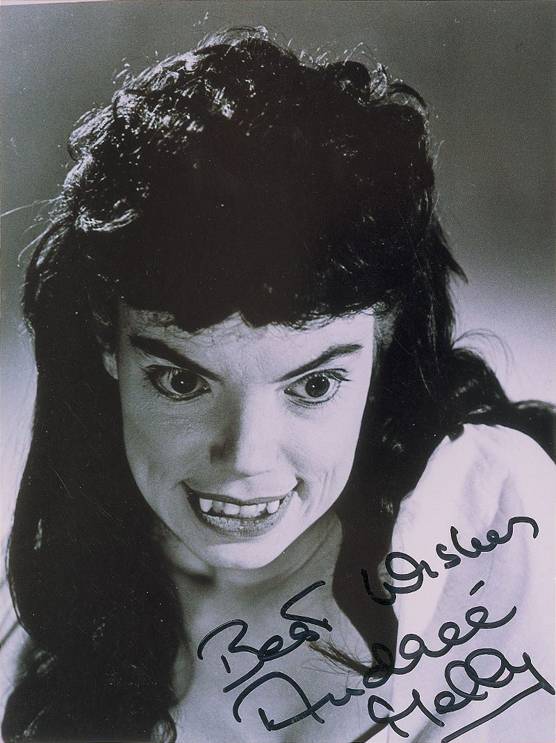English actress (b. 1932) known for her roles in The Belles of St. Trinian's and The Brides of Dracula. Glossy 5 x 7 photo of Melly in The Brides of Dracula, signed in black felt tip, “Best wishes, Andree Melly.” In fine condition, with scattered surface marks and spots.