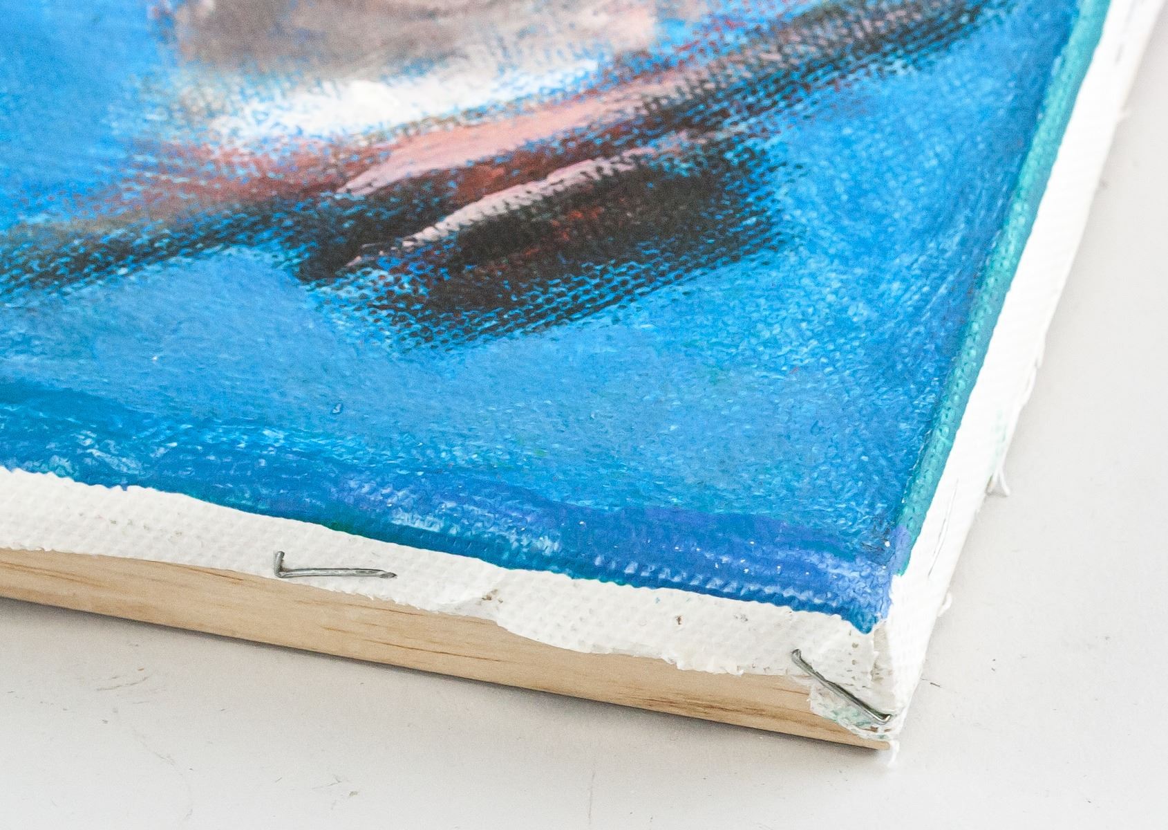Oil on canvas. Featuring a surrealist portrait scene of three figures atop a beast facing another figure. Signed by Andrei Medvedev (1960-, Russian) on the lower right corner with initials. Entitled "Beast" with dimensions on verso. 18 x 89 cm (7 x 35 in). Provenance: Acquired from the artist