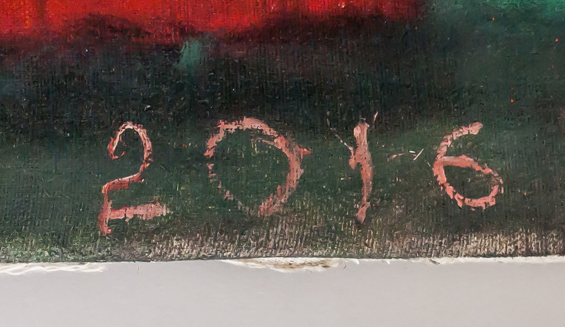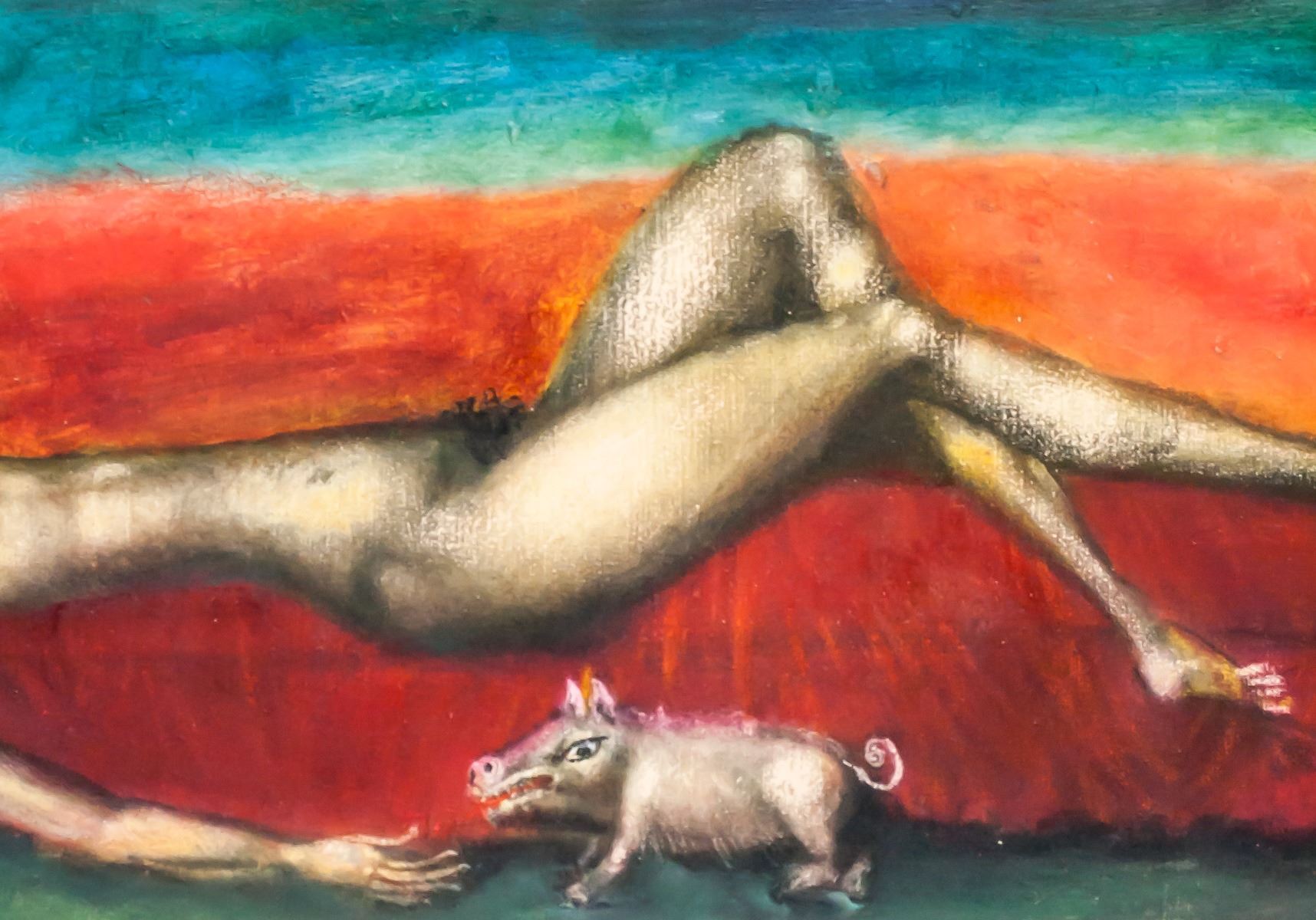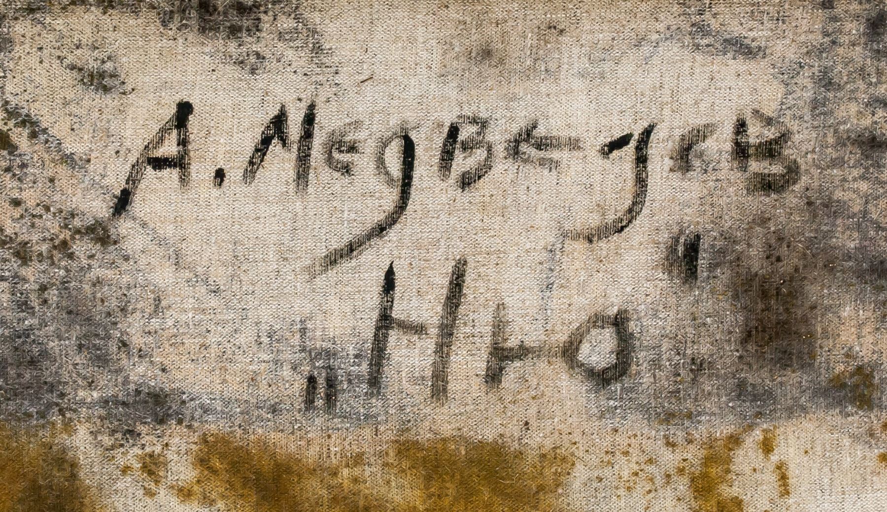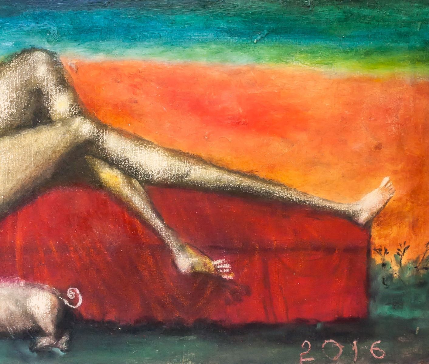 Oil on canvas. Featuring a nude. SIgned AM on the lower left corner and inscribed 2016 on the lower right corner. Signed in Cyrllic in ink A. Medvedev on verso. Attributed to Andrei Medvedev (Born 1960, Russian). 40.5 x 98 cm (15.9 x 38.6 inches). PROVENANCE: Acquired from the artist