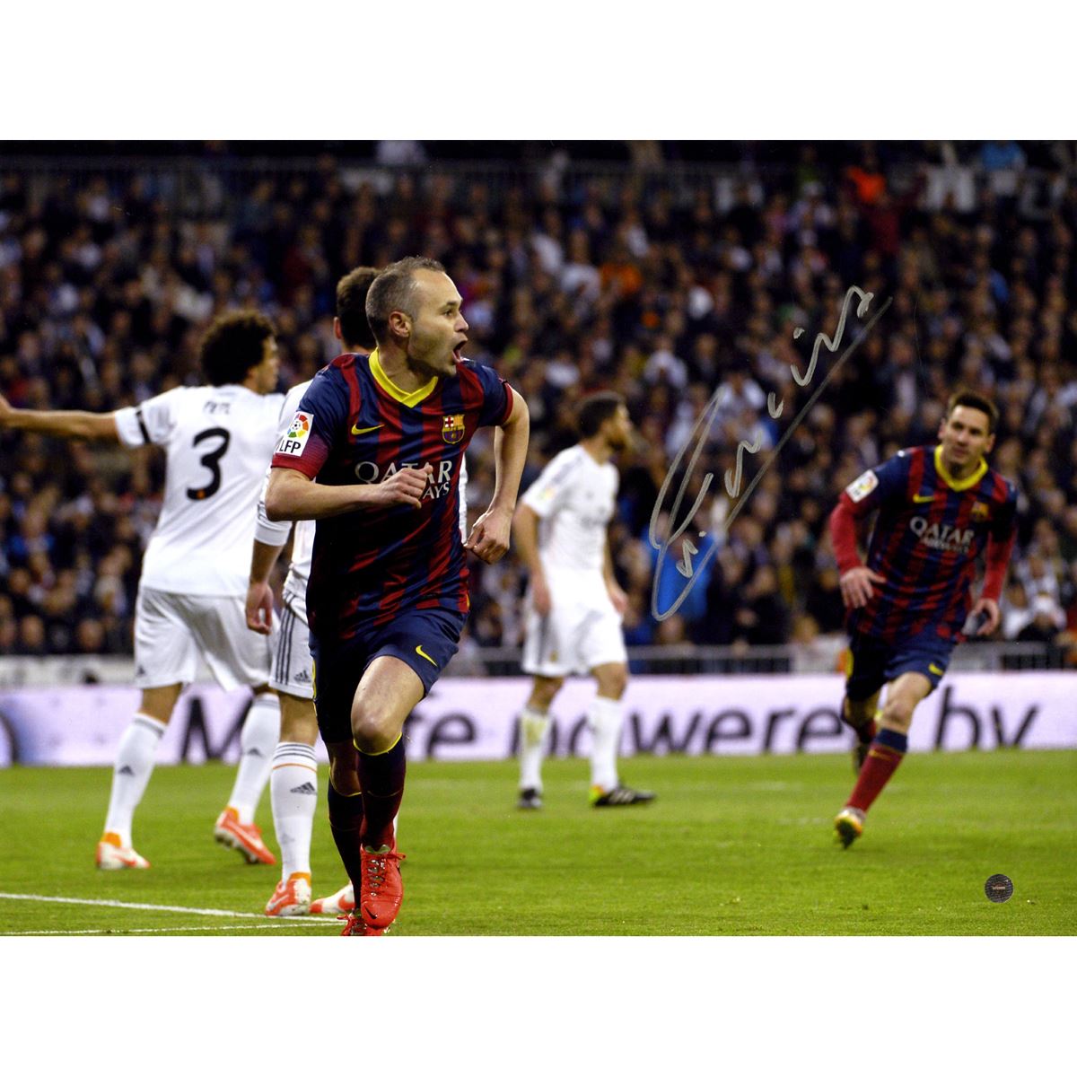 Andres Iniesta Signed 12x16 Photo Barcelona Team " El Clasico goal" (Icons Auth& Third Party Holo