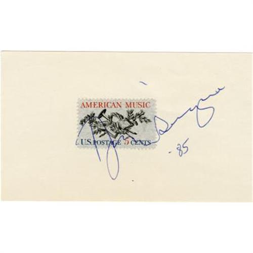 <B>Andres Segovia Autograph.</B></I> A 5" x 3" card, with a five-cent commemorative postage stamp affixed, signed by the forerunner of modern classical guitar in blue ink. Segovia's autograph extends across the face of the stamp and is large and clean, and dated by Segovia '85. In Excellent condition.<BR><BR><b>Shipping:</b> Flat Material, Small (<a target="_blank" href="http://www.heritageauctions.com/common/shipping.php">view shipping information</a>)