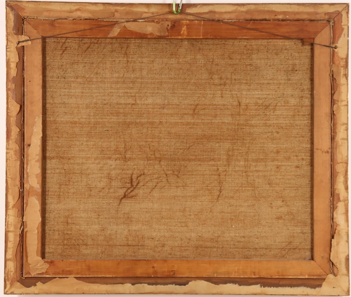 Oil on canvas, minor flaking paint, as is condition.
