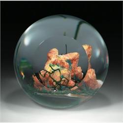 Andrew Fote "Cat in the Grass" spherical paperweight, with a three-dimensional sculpture of a go...