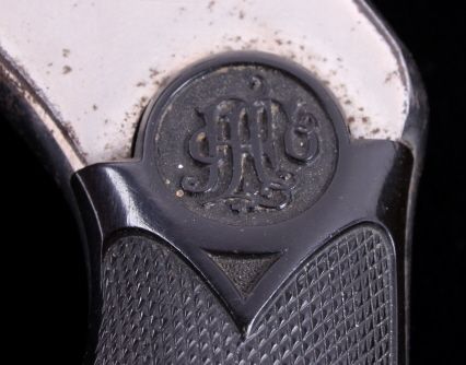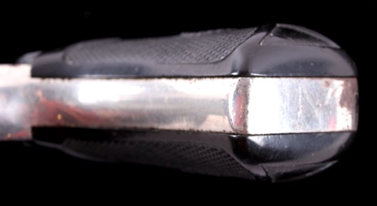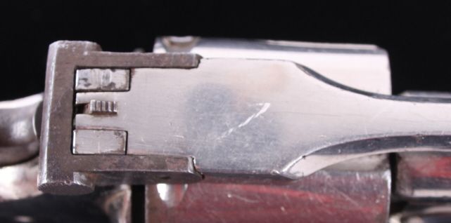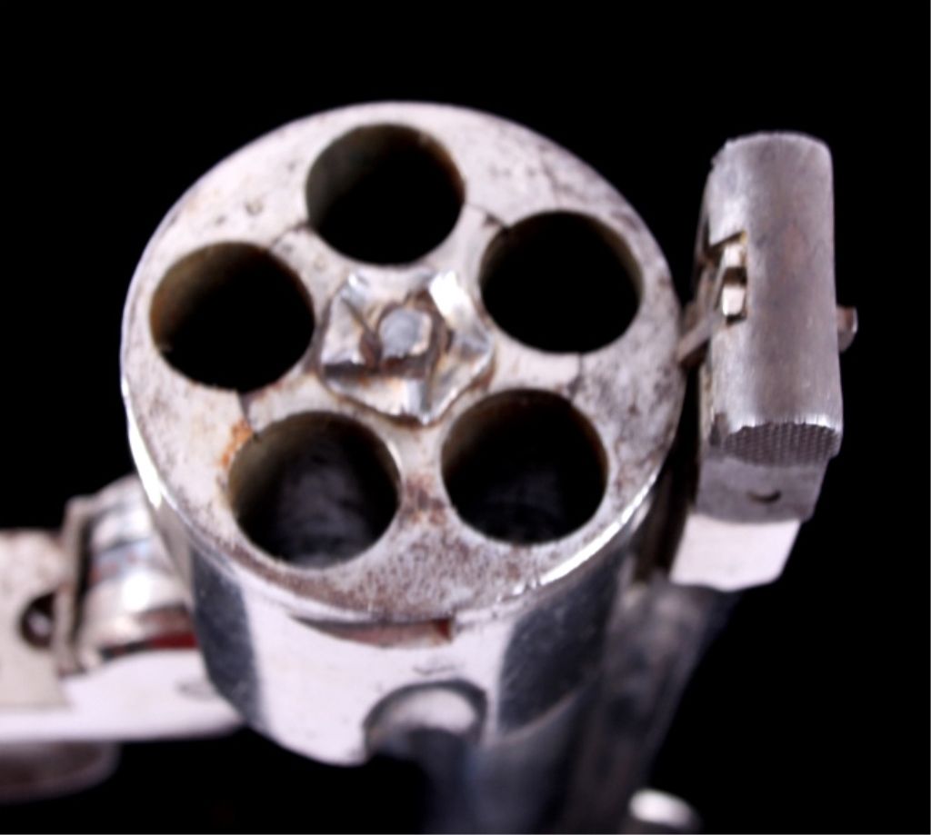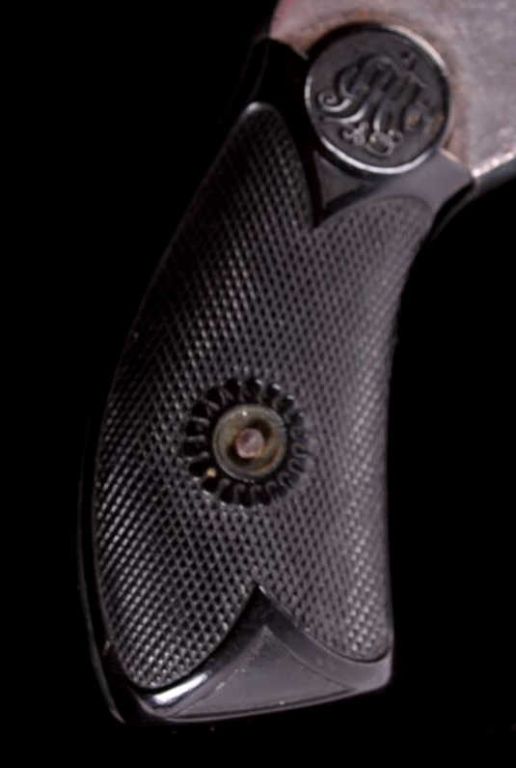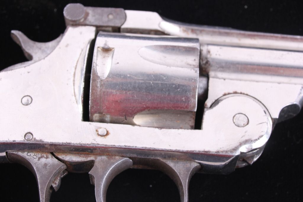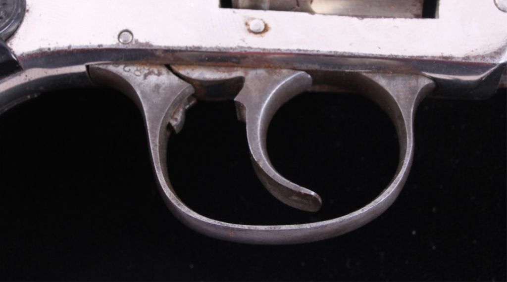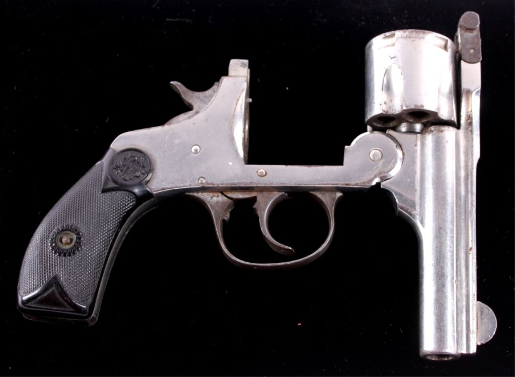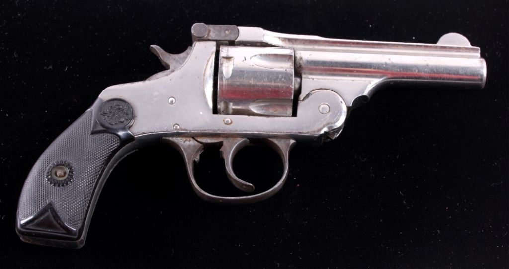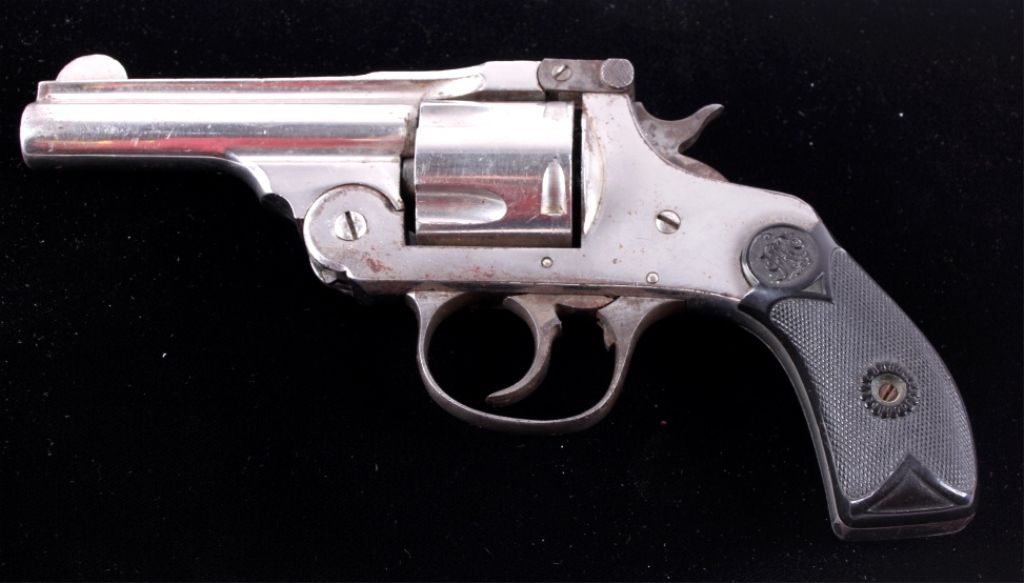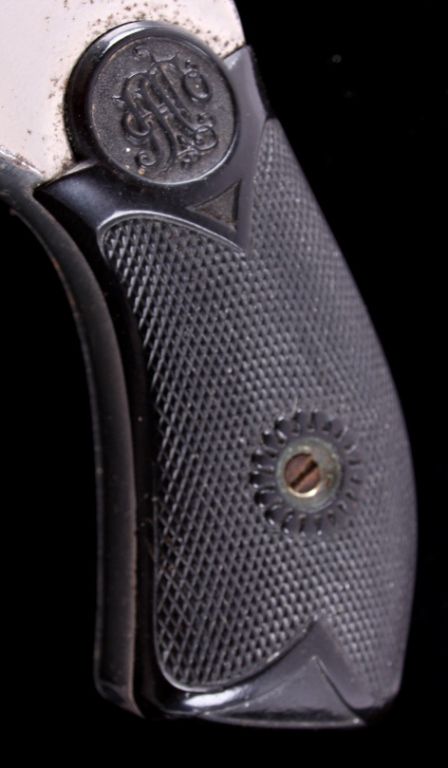 This is an Andrew Fyrberg & Co. Hopkinton, Mass. 38 caliber revolver. This is double action revolver with a nickel finish and bakelite grips. The pistol features a break over with an ejector. Serial number 2377manufactured in 1903.