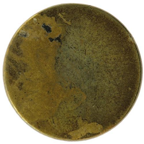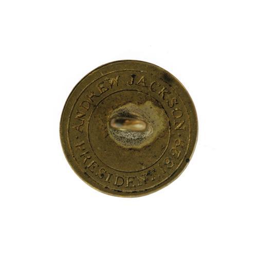 <B>Andrew Jackson Backname Clothing Button, 1829.</B></I> Listed as Albert PC-83, 20mm in gilt brass. The front is plain. The back reads Andrew Jackson President 1829. The shank has been re-attached to the button, otherwise near mint; slight soiling and toning on obverse. A nice example of this rare button!