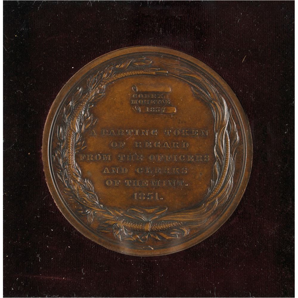 The appointee, Robert Maskell Patterson, was the son of former Mint Director Robert Patterson, Sr. (1806-24), and succeeded his brother-in-law, Samuel Moore (1824-35), in the position. Patterson’s term witnessed the introduction of steam power to the coining process, as well as many other mechanical and statutory improvements that made America’s coinage equal or superior to that of European nations. He also oversaw the debut of several new coin issues, including the gold dollar and double eagle in 1849-50, and the silver three-cent piece in 1851. He supervised the creation of new designs for all of the existing denominations, as well as the restoration of silver dollar and gold eagle coinage during 1836-38.