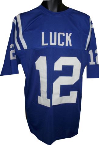 In his first two professional seasons, Andrew Luck has led the Colts to two playoff appearances including one division title in 2013, also earning a Pro Bowl selection in each season. Also, in the 2013-14 NFL playoffs, he led the Colts to the second largest playoff comeback in NFL history This is a Andrew Luck Indianapolis Colts unsigned Blue unlicensed custom-prostyle jersey with twill stitched nameplate and numbers. perfect for autograph or to wear! Size XL
