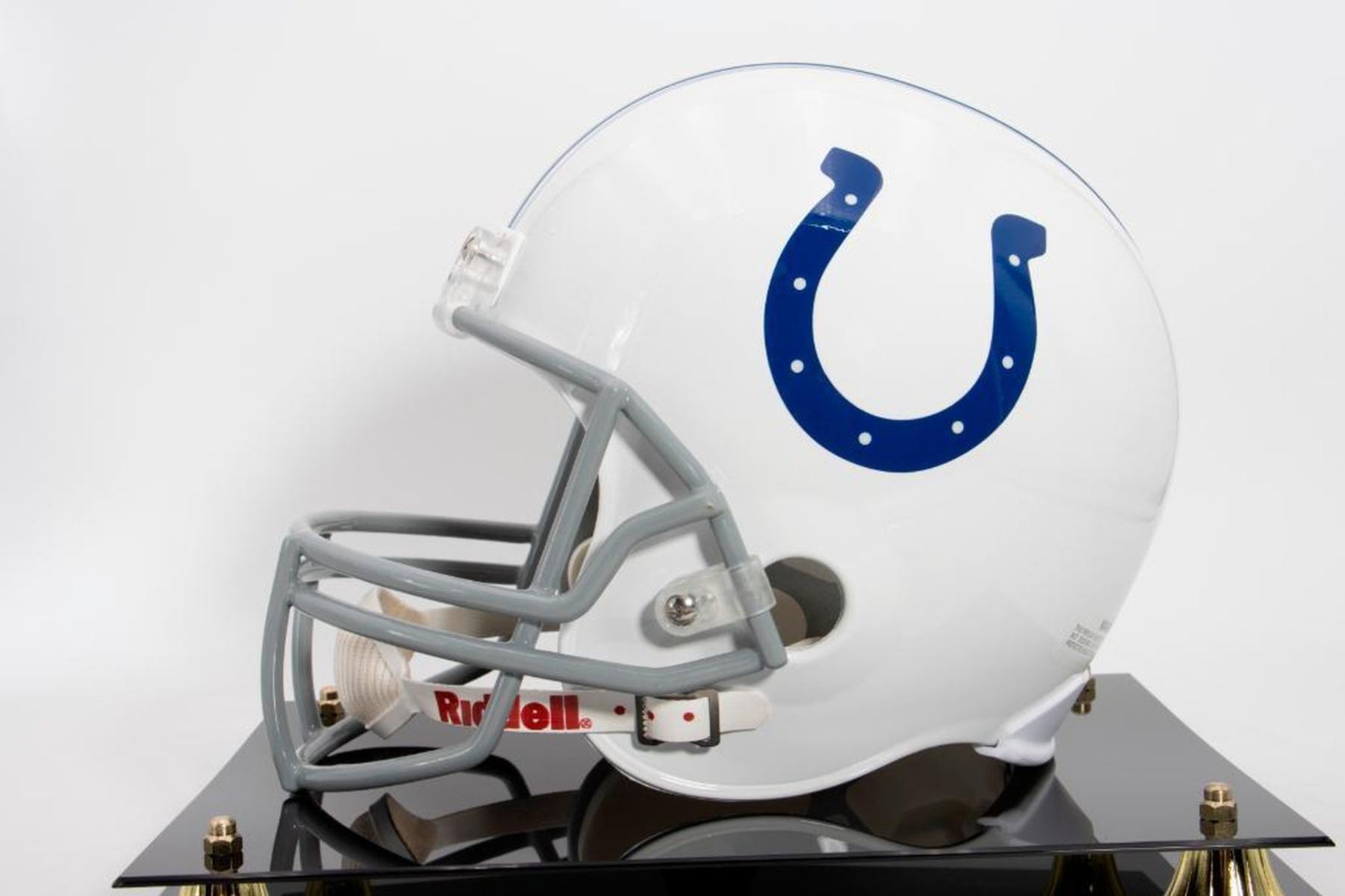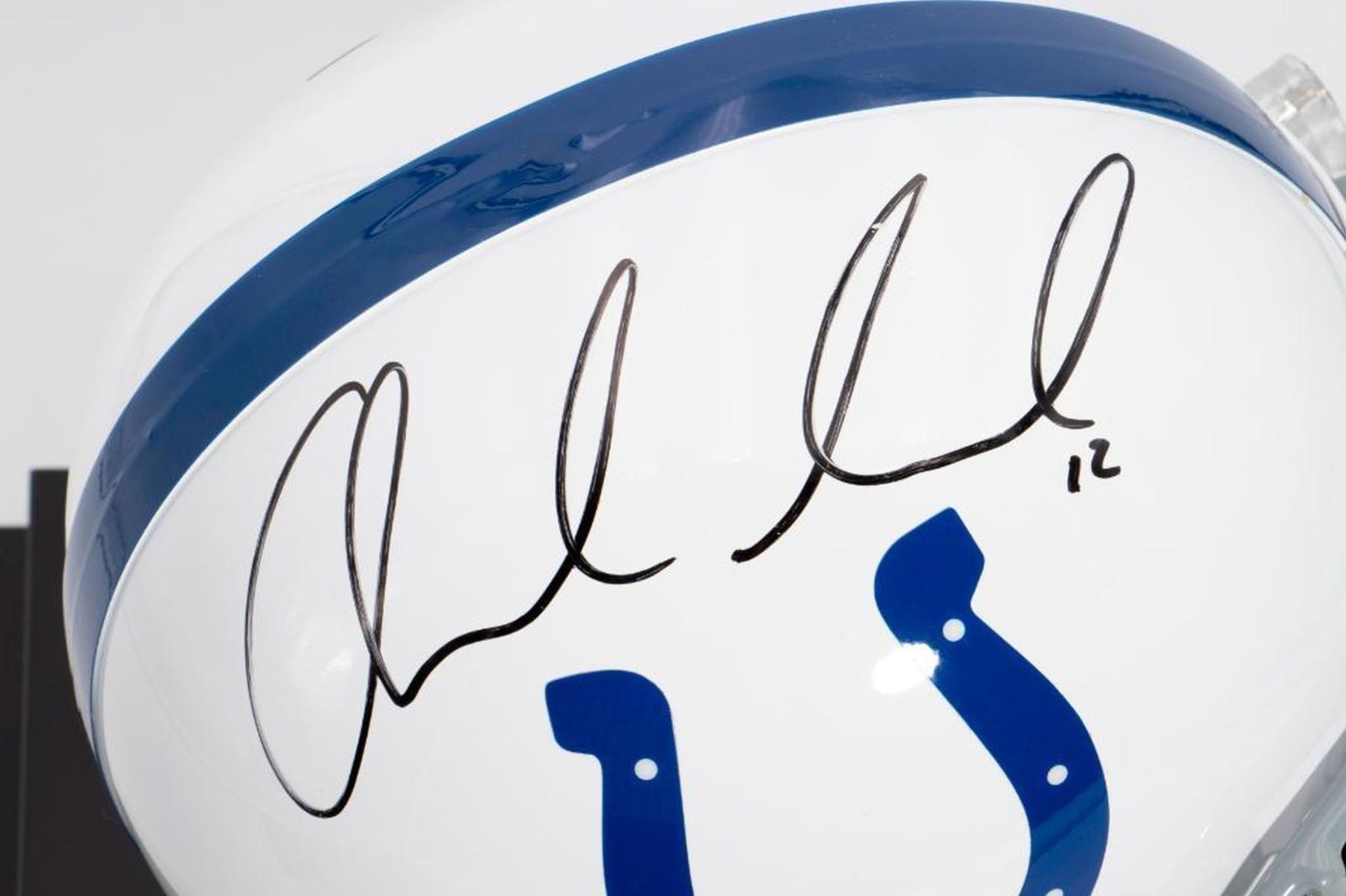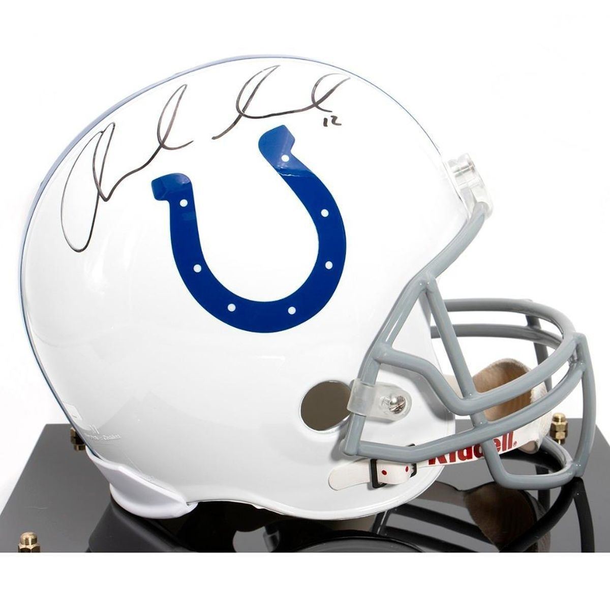 Cased Andrew Luck Signed Indianapolis Colts Full Size Pro helmet. H: 12 inches W: 14.5 inches Depth: 12.9 inches