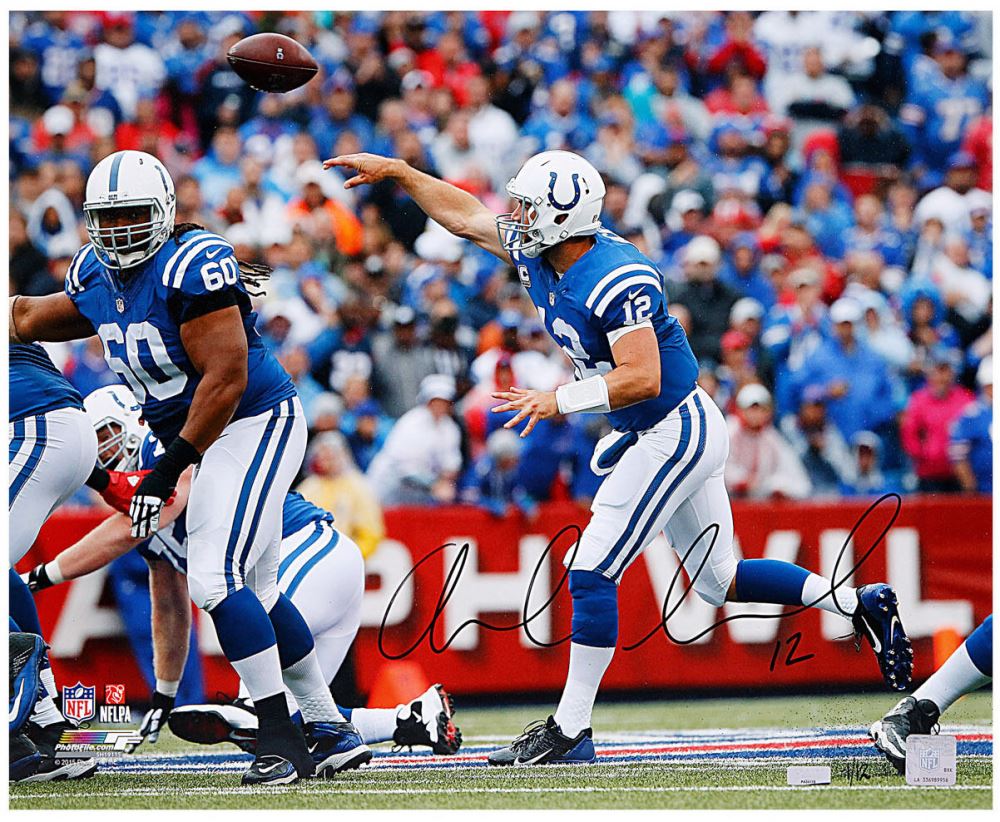 Limited Edition 1 of 12! An NFL quarterback's mechanics is a key ingredient in deciding whether he will be good or great. And few quarterbacks have the technique and precision the Colts Andrew Luck has. Take home a piece celebrating Luck's effortless throwing motion with this autographed 16x20 photograph. This Andrew Luck autographed photograph includes a Panini Authentic certificate of authenticity with a unique hologram number that corresponds to the hologram on the actual image. These holograms protect the integrity of the product and serve to guarantee the authenticity of the signature it bears. You will receive number "1" from the edition.