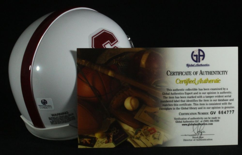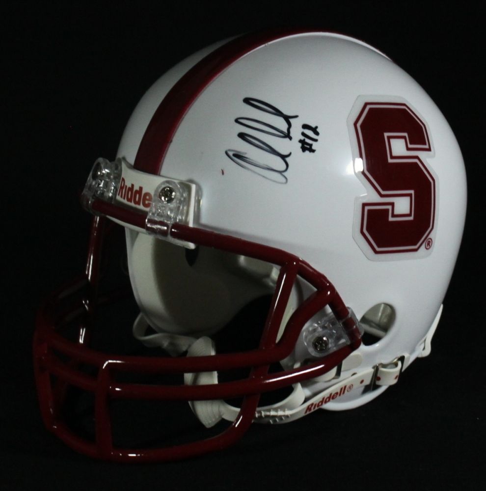 Riddell Stanford mini-helmet hand-signed in black felt tip pen by Andrew Luck (Colts). The autograph has been reviewed and authenticated by Global Authentics (GA) and includes their official serially numbered hologram and matching COA.