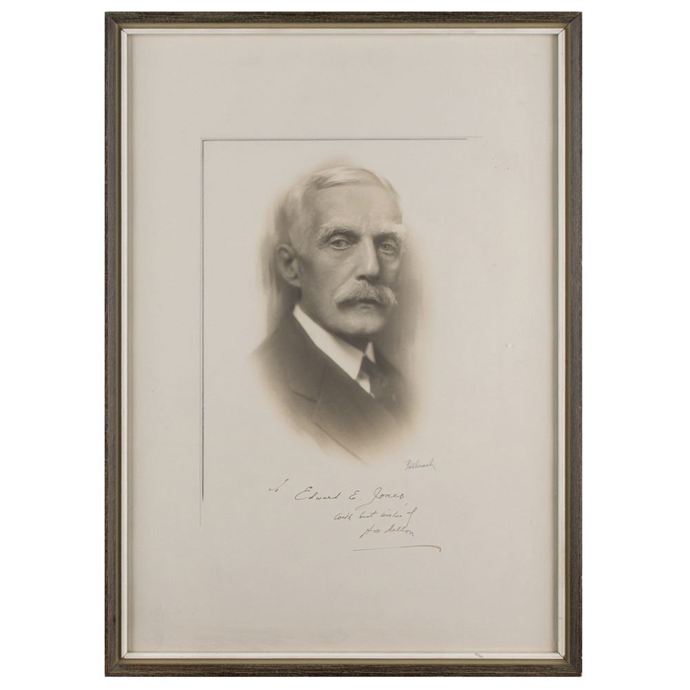 Vintage matte-finish 11.25 x 16.5 Bachrach photo of Mellon in a distinguished pose, signed and inscribed in fountain pen, "To Edward E. Jones, with best wishes of A. W. Mellon.†Framed under premium UV protected anti-glare glass to an overall size of 12.5 x 17.5. In fine condition.
