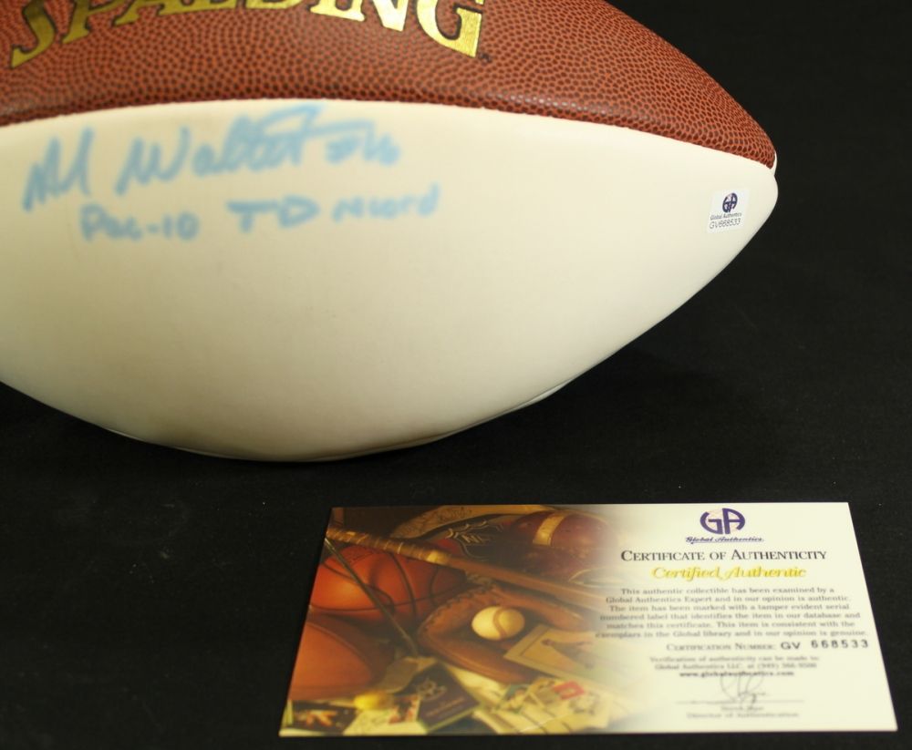 Full-size football hand-signed in blue felt tip pen by Andrew Walter (Raiders, Patriots). Includes a Global Authentics (GA) hologram and matching COA for authenticity purposes.