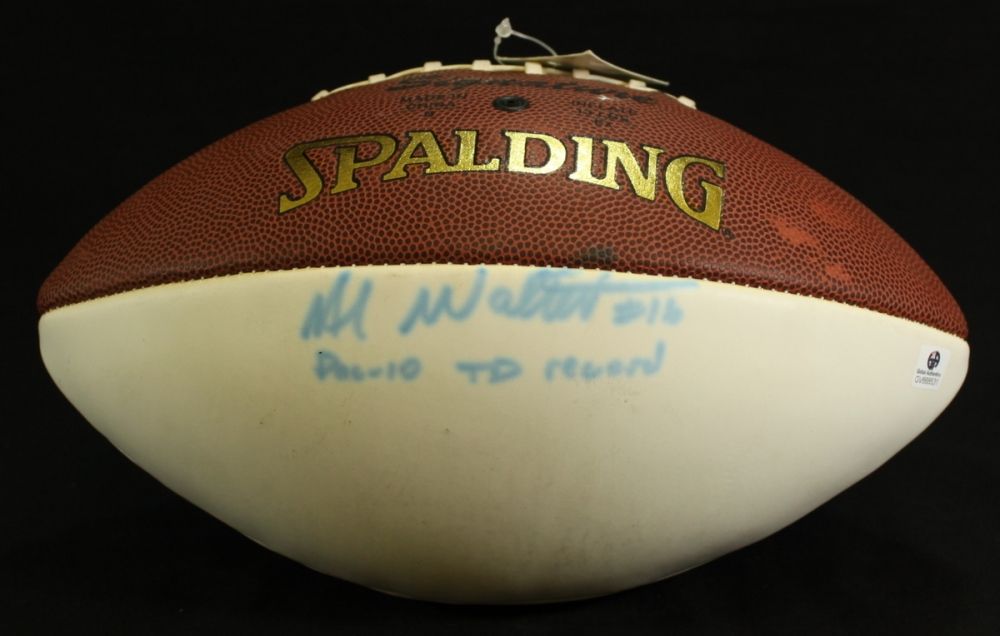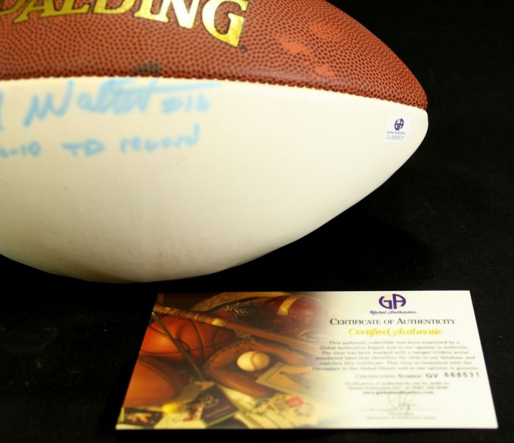 Full-size football hand-signed in blue felt tip pen by Andrew Walter (Raiders, Patriots). Includes a Global Authentics (GA) hologram and matching COA for authenticity purposes.