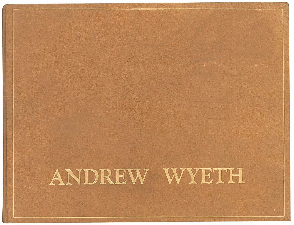 Signed book: The Art of Andrew Wyeth. First edition. Boston: New York Graphic Society, 1973. Leatherbound hardcover, 12 x 9.25, 176 pages. Signed and inscribed on the first free end page in blue ballpoint, “For Stuart, with warmest greetings, Andrew Wyeth.” In very good to fine condition. Accompanied by photocopied letter of provenance from a gentleman whose father was a friend of Wyeth’s and was given the book as a gift, which he had custom-bound in leather.