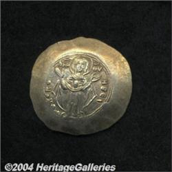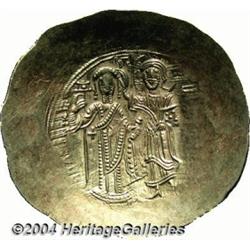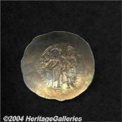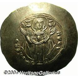 <B>Andronicus I.</B></I> 1183-1185. EL aspron trachy (32 mm, 4.31 g). Constantinople. The Virgin standing facing, <I>orans</B></I> / Andronicus standing facing, holding labarum and akakia, being crowned by Christ standing facing. DOC 2a; Hendy pl. 18, 11-12; SB 1984. Good XF. <BR><I>From the Geneva Collection.</B></I> <BR><BR><B>Important notice:</B> Heritage usually auctions material at the rate of 200-250 lots per hour. On some occasions eBay Live bid software or the Internet may not be able to keep up with the pace of the auction. We recommend placing a realistic absentee bid now as insurance to avoid disappointment. Occasionally the auctioneer may eliminate or reject an eBay Live bid, and the auctioneer may also reopen a lot after the close of the eBay live bidding (usually because we missed an audience bid), and may reject your bid even if it shows you as the winning bidder. By bidding via eBay Live, you agree that Heritage may award the lot to another bidder at its sole discretion under the circumstances described above or any other reasonable circumstances. Since eBay bids are not shown to us until we open the lot on the floor, we treat those bids just like floor bids. In most cases the floor responds before the eBay bid is presented to us, due to Internet lag time, so for consistency we have made it a policy that floor bids are always considered first over tie eBay live bids. Also please note that all Heritage lots purchased through eBay Live carry a 20% Buyer's Premium. Please make sure you read the Terms and Conditions before you bid.