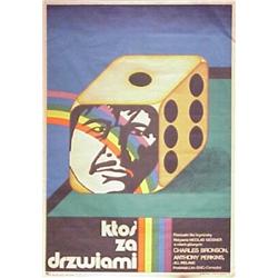 KTOS ZA DRZWIAMI, 1972, color lithograph movie poster, starring Charles Bronson, Anthony Perkins, & Jill Ireland, image 31 x 21 3/4", taped 1" tear upper right edge, small tear upper left corner. STARTING BID $20. ESTIMATE $20 TO $1000