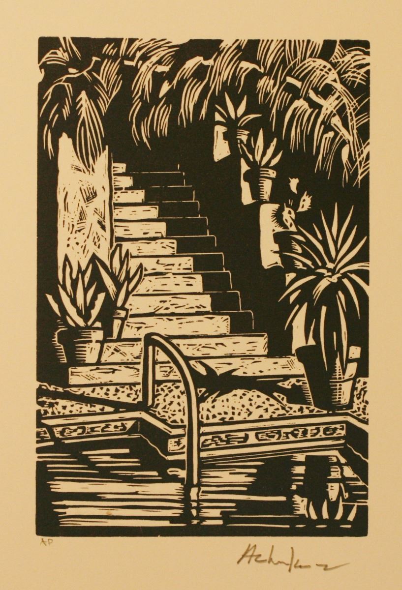 Set of three, "Cactus" 3" x 2-1/2" AP, "Stairs by a Pool" 6" x 4" AP, "3 Singing Cowboys" 4" x 3" AP, All Pencil Signed, Paper has "Andy Chuka" imprint in corner, made on high quality (torn edge) paper, all