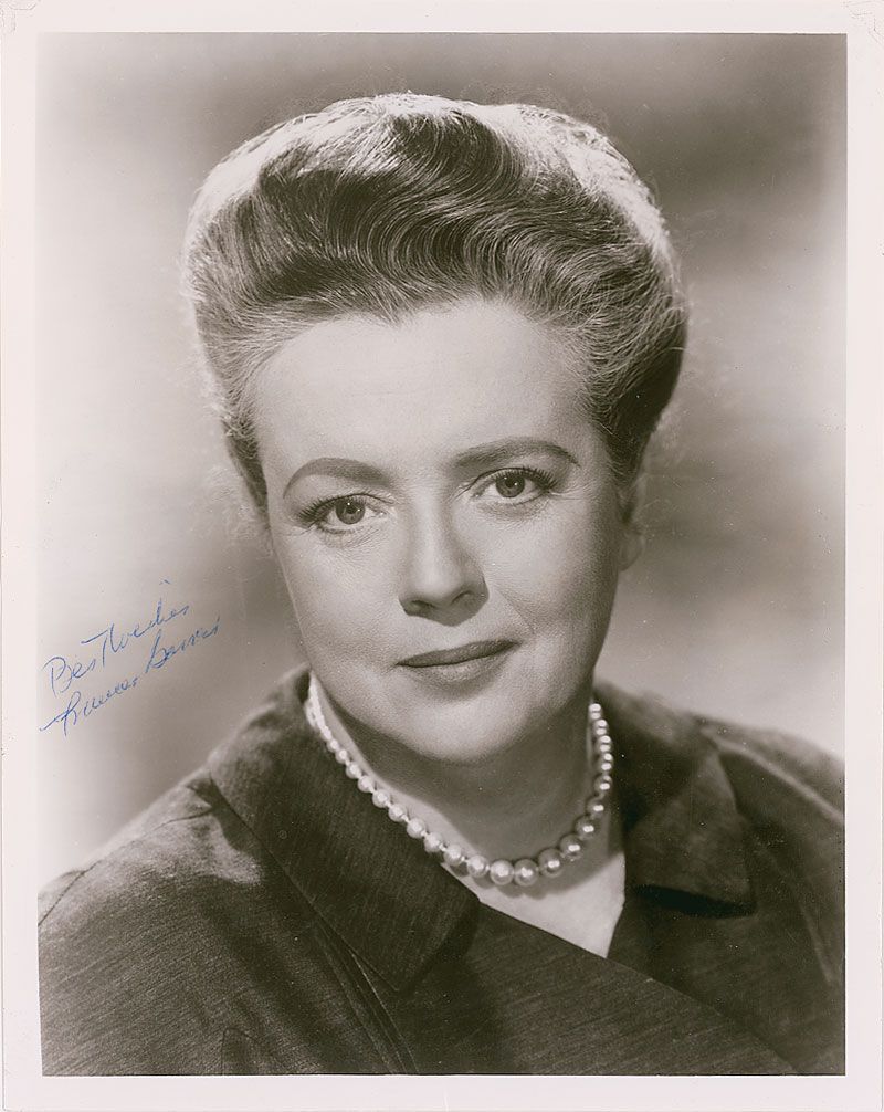 Glossy 8 x 10 photo, signed in blue ballpoint, “Best wishes, Frances Bavier.” In very good condition, with scattered creases to background and image.