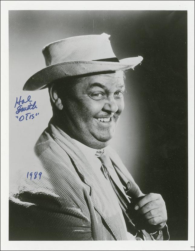 Glossy 8 x 10 photo of Smith as Otis, signed in blue felt tip, “Hal Smith ‘Otis’ 1989.” In very fine condition.