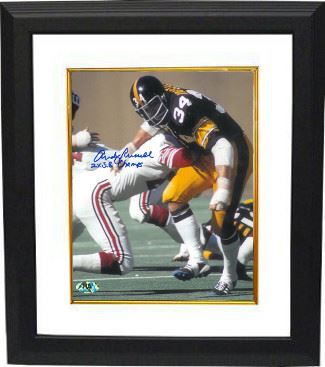 Andy Russell wore number 34 as an outside linebacker for the Pittsburgh Steelers in 1963 and from 1966-1976, the two-year gap being from when Russell temporarily left the team for the Army. He was an early member of Pittsburgh's famed Steel Curtain defense, and was named the Steelers' MVP in 1971. He made seven Pro Bowl appearances—in 1969 and from 1971 through 1976—and earned two Super Bowl rings in Super Bowl IX and Super Bowl X. Andy Russell has hand autographed this Pittsburgh Steelers 8x10 Photo with 2X SB Champs inscription. MAB Hologram and Certificate of Authenticity from Athlon Sports. Custom White Mat and Premium Black Frame as shown.