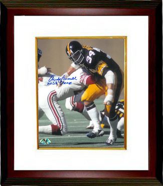 Andy Russell wore number 34 as an outside linebacker for the Pittsburgh Steelers in 1963 and from 1966-1976, the two-year gap being from when Russell temporarily left the team for the Army. He was an early member of Pittsburgh's famed Steel Curtain defense, and was named the Steelers' MVP in 1971. He made seven Pro Bowl appearances—in 1969 and from 1971 through 1976—and earned two Super Bowl rings in Super Bowl IX and Super Bowl X. Andy Russell has hand autographed this Pittsburgh Steelers 8x10 Photo with 2X SB Champs inscription. MAB Hologram and Certificate of Authenticity from Athlon Sports. Custom White Mat and Premium Mahogany Frame as shown.