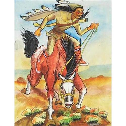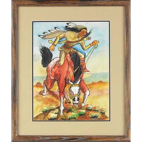 Andy Tsinajinnie (1918-2000) (Arizona) Watercolor, Indian on Horse, sight size 15" x 11 1/2", signed lower right