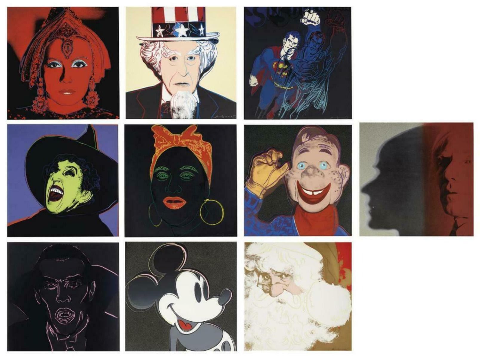 Andy Warhol- 10 Screenprints in colors, (all with diamond dust except Dracula) "Myth"
