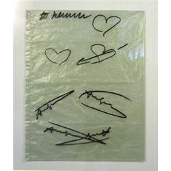 Original, flt pen drawing on a plastic material, "3 x Hearts", signed 4 times, dedicated, 55 x 44 cm