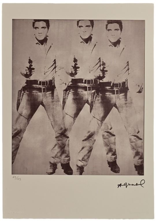 Limited edition 69 of 125 Elvis Presley Lithograph with Andy Warhol dry stamped (embossed) in the left corner of the paper with a black stamped signature in the right. Also, including a blue stamped signature on the verso. KC23