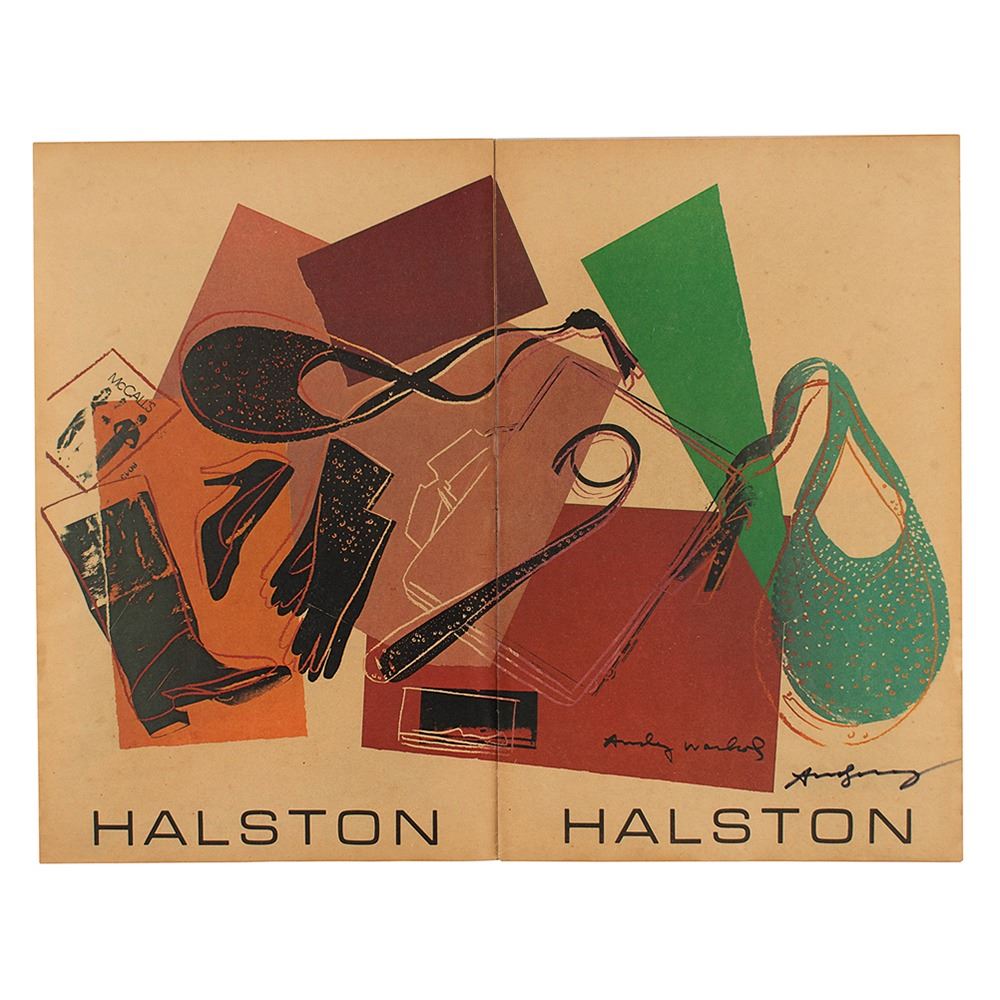 Ten-page section of Interview magazine from September 1982, 11 x 17, containing four double-page color ads for Halston designed by Andy Warhol, one of which has been signed in black felt tip, "Andy Warhol." Both ads also feature Warhol's pre-printed facsimile signature. In fine condition, with the binding staples missing.