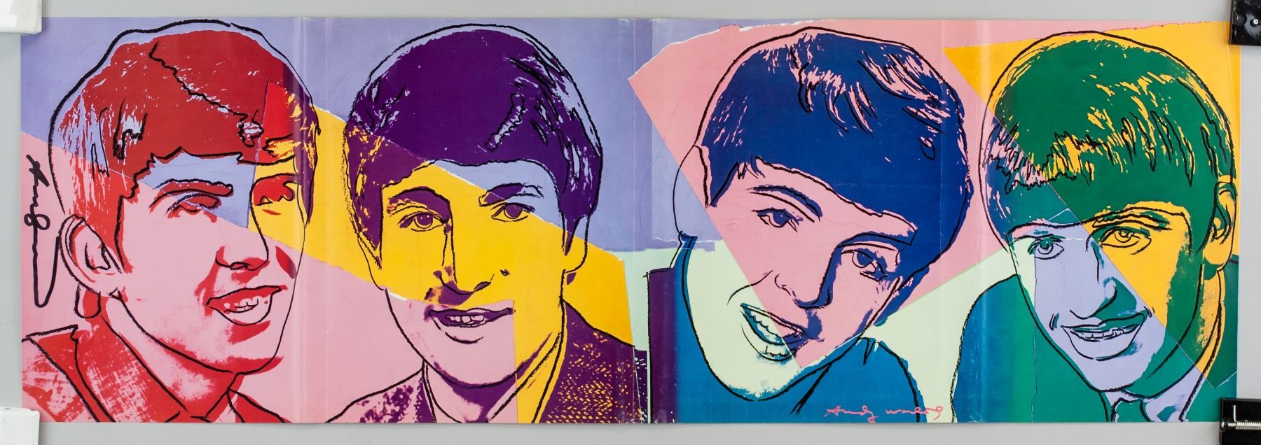 Color offset lithograph on cream wove paper. Featuring the Beatles. Entitled, "The Beatles #1". Signed Andy Warhol in black marker on the center left corner. Attributed to Andy Warhol (1928-1987, American). 30 x 91 cm (12 x 35.75 inches). Provenance: This lot carries limited provenance from a Private American collection, California