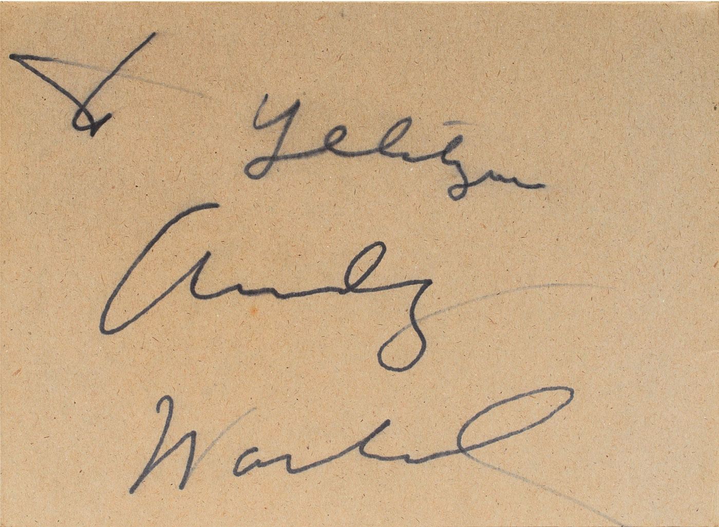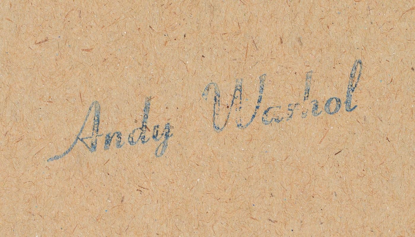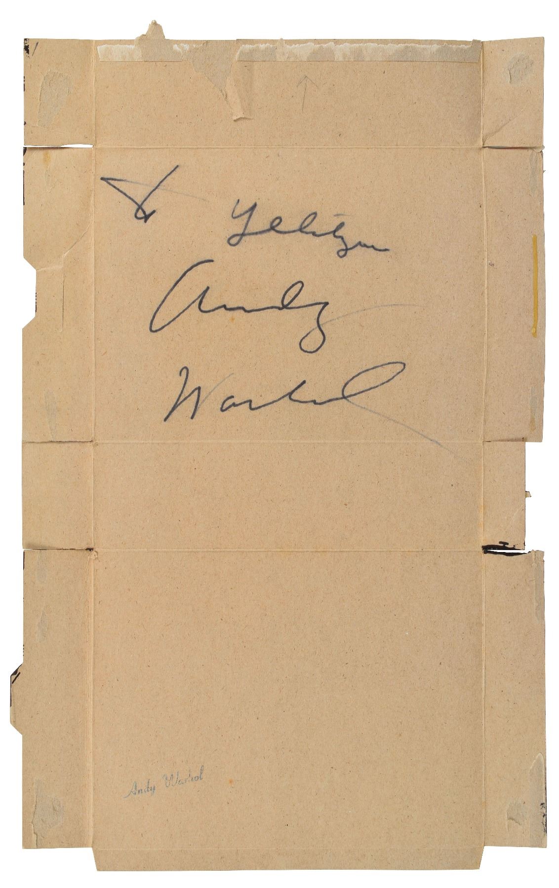 The inspiration for Warhol's 'Cow Series' came from art dealer Ivan Karp, who once ironically suggested to him: 'Why don’t you paint some cows, they’re so wonderfully pastoral and such a durable image in the history of the arts.' In 1966, Warhol denounced painting as 'dead' and committed himself to printmaking as an art form. His printer, Gerard Malanga, chose this particular image to use. The 'Cow Series,' which Warhol published between 1966 and 1976, featured four variations: 'Pink Cow on Yellow Background,' 'Brown Cow on Blue Background,' 'Yellow Cow on Blue Background,' and 'Pink Cow on Purple Background.' This unique piece—which could be called 'Black Cow on Cereal Box'—combines the iconic cow image with Warhol's interest in mass-produced consumer product packaging, made most famous by his Campbell's Soup works. Warhol had also previously experimented with Kellogg's boxes, creating a series of Corn Flakes boxes for the Los Angeles County Museum of Art in 1971. An interesting and unique hand-signed piece by the innovative Pop artist.