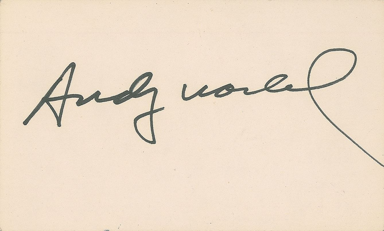 Felt tip signature, "Andy Warhol,” on an off-white 5 x 3 card. In fine condition.