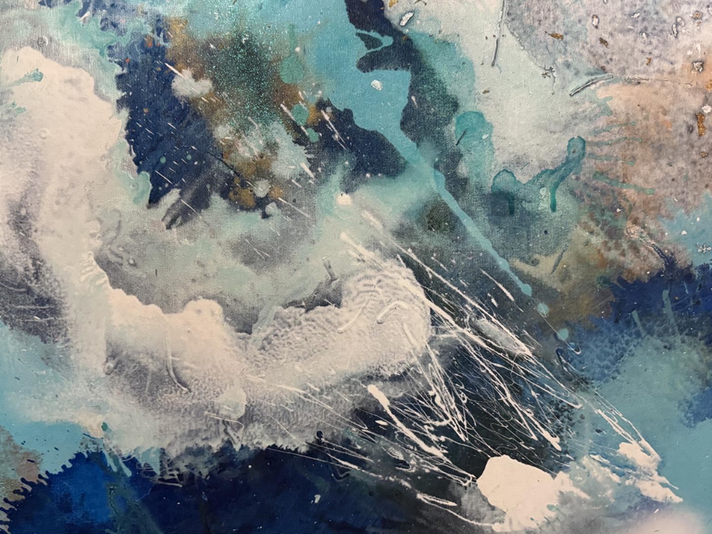Marvelous original acrylic on canvas by Azarin, hand signed by artist. This artwork comes framed and ready to hang. Art size 55x55" framed size 57x57"