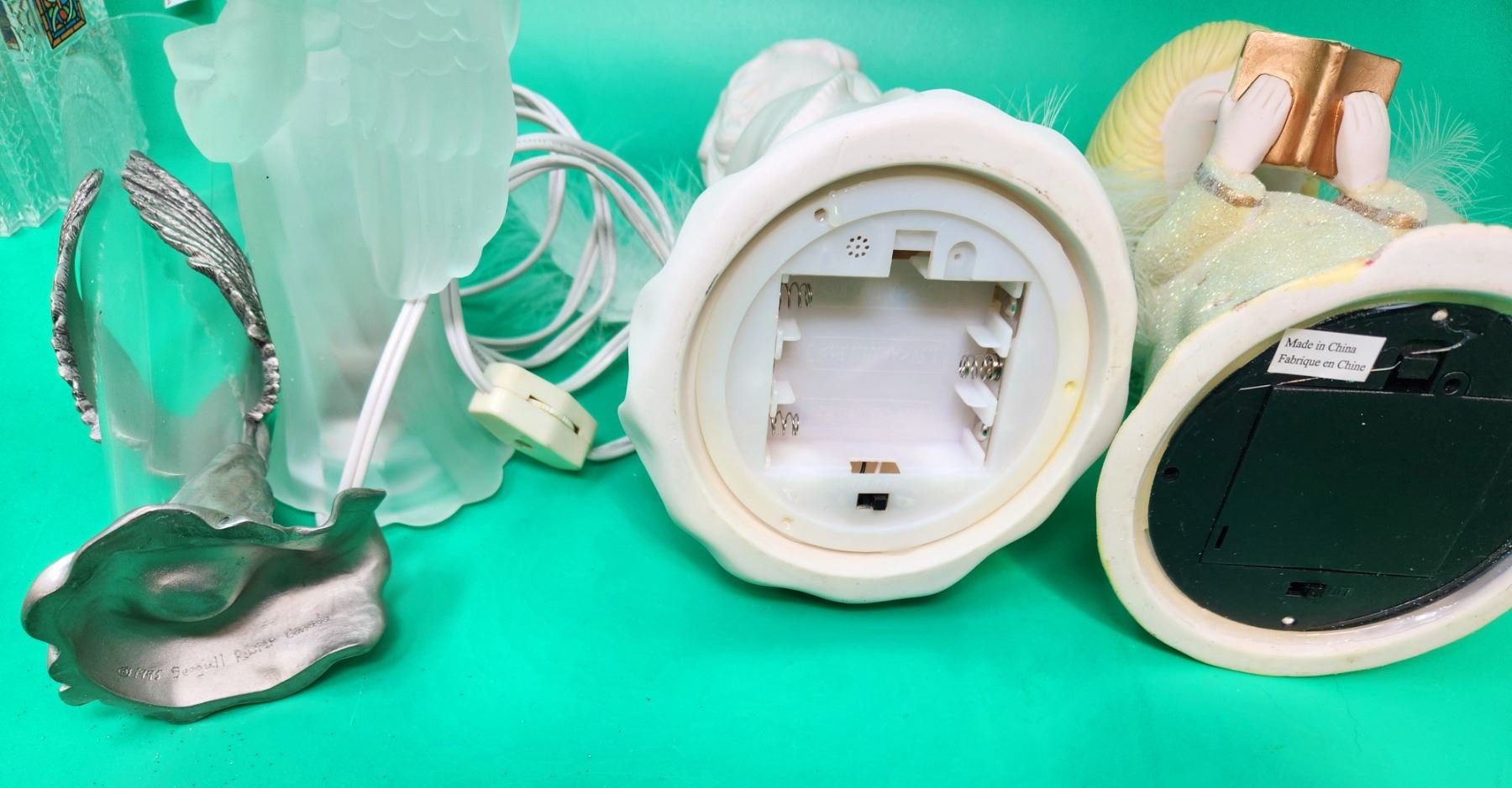 Angel & Church Decor Lot w/ Battery-Operated Angels, Pewter Figurine, Bell, & More