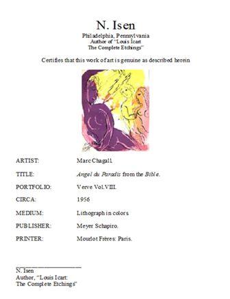 Lithograph in colors By Marc Chagall Verve Vol. VIII. CIRCA: 1956