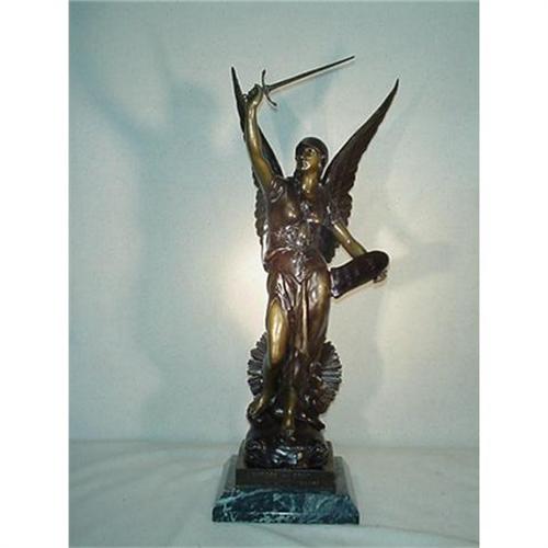 Angel Warrior with Sword. Cast in Bronze with multi patinas on pyramid shape marble base. Artist signed "Picult"