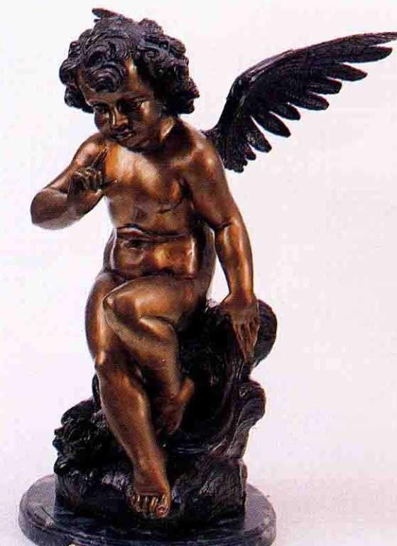 "Angel With Wings" Bronze Sculpture - After Houdon - Museum Quality Verdi Finish - Mounted On A Fine Italian Marble Base - Beautifully Detailed - Signed - Mint Condition - 33"H X 14"W - Lost Wax Cast Bronze