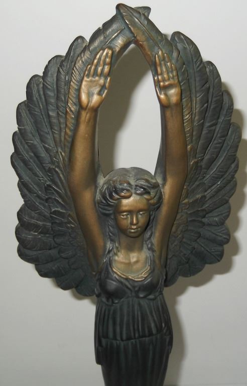 Angel statue by Austin sculpture, artist DaCosar. Chips to statue. 20 inches x 6 inches.