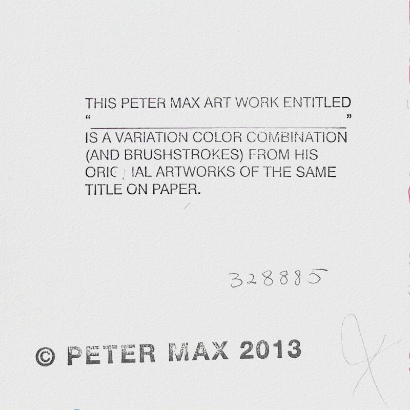 "Angel with Clouds" is a one-of-a-kind acrylic mixed media on paper, hand signed by Peter Max. The piece comes custom framed with a backside cutout to display Peter Max Studio registration number 328885 certifying authenticity. Measures approximately 24" x 22" (frame), 10" x 8" (image). This item requires special handling and may have a longer than usual turnaround.