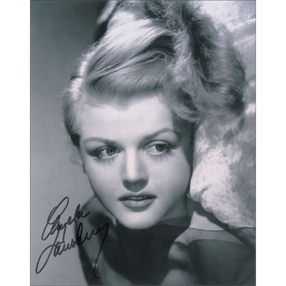 Two different satin-finish 8 x 10 photos, one of Lansbury resting her head on a cushion, the other revealing the actress’s attractive legs, each signed in black felt tip. In very fine condition.