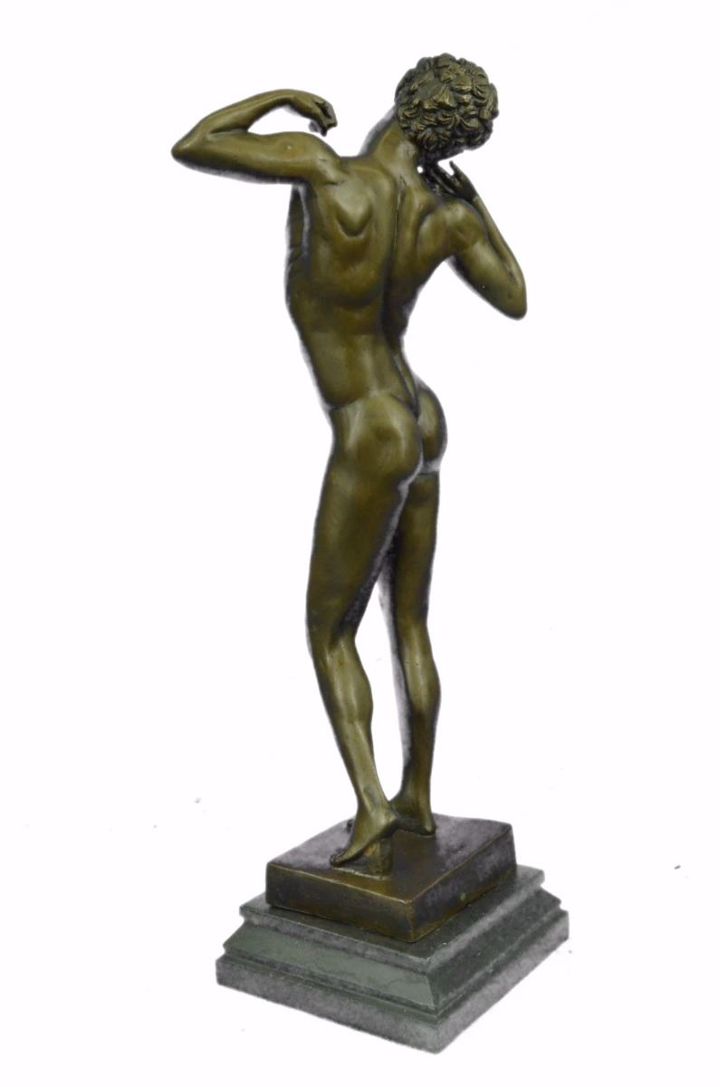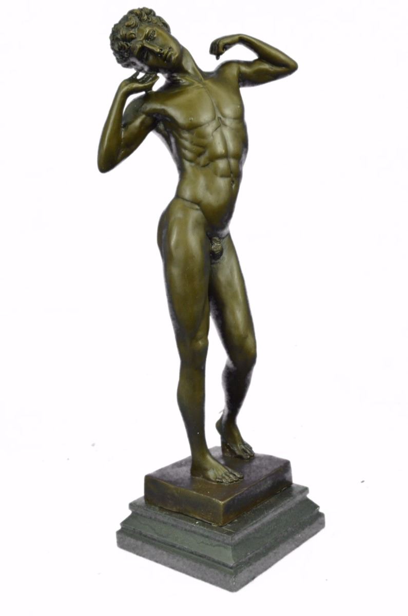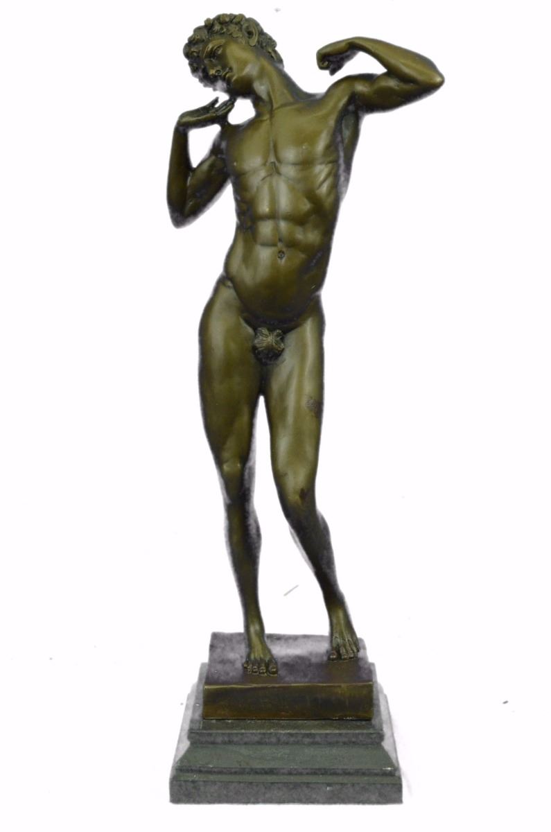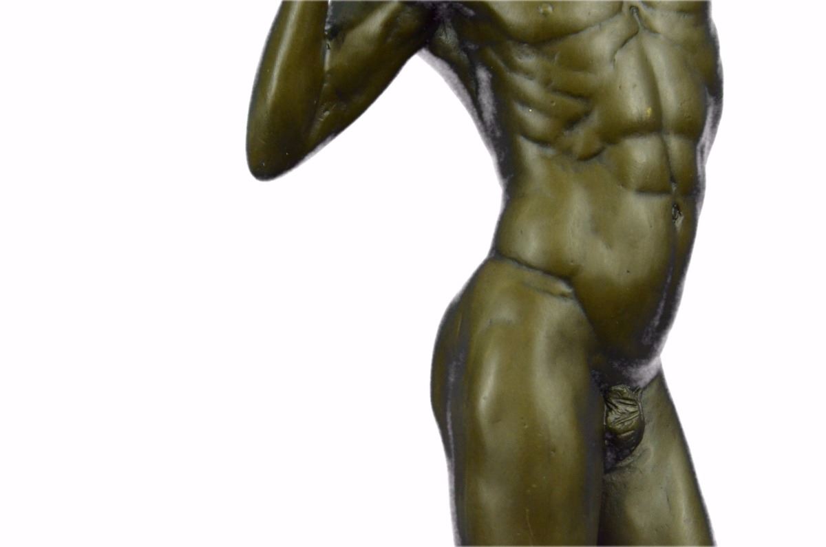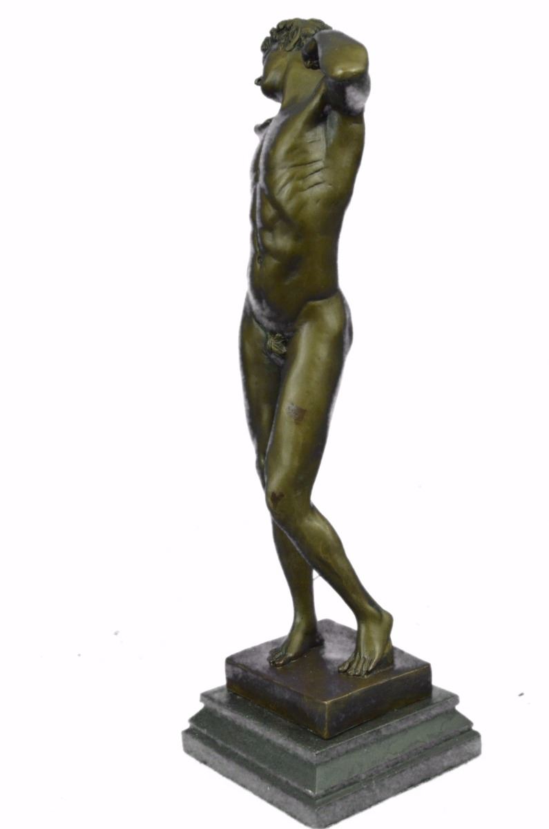 The Nude Man Can Be Imagined Stretching His Arms Among The Morning Sun Streaming In Through An Open Window. His Eyes Hold The Sleepiness Of His Dreams And A Certain Lightness Of Attitude. Through His Pose The Anatomy And The Muscular Movement Of The Body Is Perceived. He Was Fashioned Using The Ancient Method Of The Lost-Wax Technique And Stained With A Brown Patina Finish For Conservation. The Sculpture Is Mounted Upon A Black Marble Base With The Artist Michelangelo's Signature. Michelangelo Di Lodovico Buonarroti Simoni (6 March 1475 – 18 February 1564), Commonly Known As Michelangelo, Was An Italian Renaissance Painter, Sculptor, Architect, Poet, And Engineer. Despite Making Few Forays Beyond The Arts, His Versatility In The Disciplines He Took Up Was Of Such A High Order That He Is Often Considered A Contender For The Title Of The Archetypal Renaissance Man, Along With Fellow Italian Leonardo Da Vinci. Michelangelo's Output In Every Field During His Long Life Was Prodigious; When The Sheer Volume Of Correspondence, Sketches, And Reminiscences That Survive Is Also Taken Into Account, He Is The Best-Documented Artist Of The 16Th Century. Two Of His Best-Known Works, The Pietà And David, Were Sculpted Before He Turned Thirty. Bronze Dimensions With Marble Base: Height 17 X Width 8 inches. Weight: 12 Lbs.