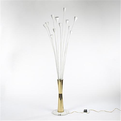 Angelo Lelli Calla lamp Arredoluce Italy, 1950 marble, brass, enameled metal 26"dia x 88"h Provenance: Rossella Colombari, Milano