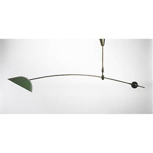 Angelo Lelli ceiling fixture Arredoluce Italy, 1964 enameled metal, brass 68.5 w x 12 d x 22 h inches Literature: La Luce Italiana: Design delle Lampade 1945-2000, Bassi, pg. 77
