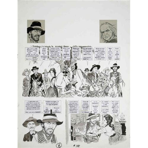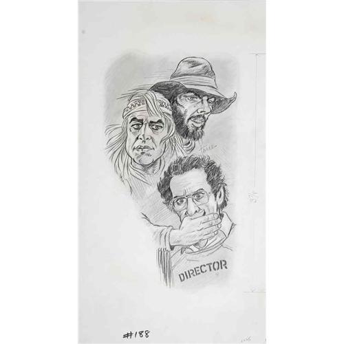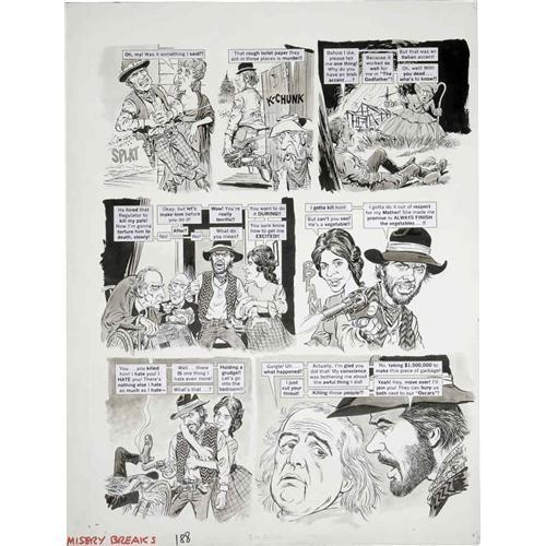 <B>Angelo Torres - Mad #188 Complete 3-page Story "Misery Breaks" Original Art (EC, 1977).</B></I> Angelo Torres takes dead aim at Marlon Brando and Jack Nicholson in this wicked parody of "The Missouri Breaks." In addition to the story pages, this lot also includes a pencil portrait panel of Brando, Nicholson, and director Arthur Penn. Each page of the story has an approximate image area of 17" x 22.5", while the pencil panel has an image area of 8" x 14". The art is in Excellent condition. Saddle up and bid! <I>From the Mad Magazine Archives</B></I>.